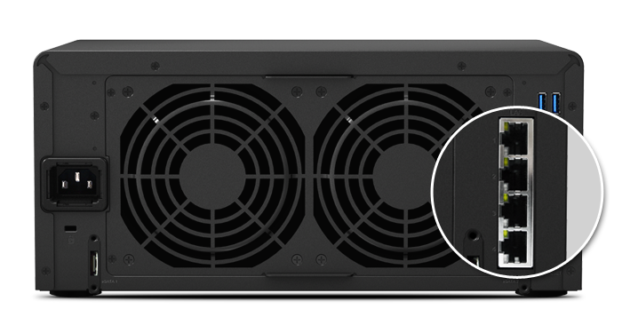 DS1815+ 內(nèi)建支持故障移轉(zhuǎn)及 Link Aggregation 的四網(wǎng)絡(luò)埠,在其中一個網(wǎng)絡(luò)埠故障的狀況下,仍可讓聯(lián)機繼續(xù),幫助降低服務(wù)中斷的可能性以及因停機所造成的昂貴成本。此外,Link Aggregation 充分發(fā)揮四網(wǎng)絡(luò)埠的優(yōu)點,可提升連接速度,突破單一網(wǎng)絡(luò)線或網(wǎng)絡(luò)埠的速限。