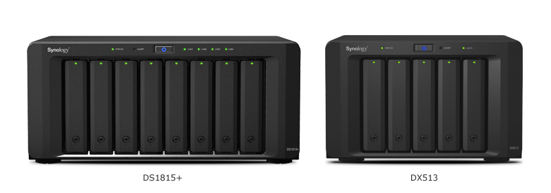 當數(shù)據(jù)存儲空間需要擴充時,DS1815+ 可連接至其專用的擴充設(shè)備 DX513,以省力的方式快速擴充存儲容量。DS1815+ 可通過特別設(shè)計的 eSATA 傳輸線和兩臺 DX513 擴充設(shè)備2搭配使用,總存儲容量可以高達 180TB3。