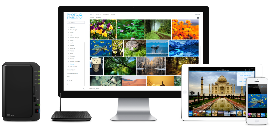 通過(guò) Photo Station,你可以建立在線相簿或 blog,分享給朋友及客戶。只要容量許可,你可以上傳所有的照片,而不再受第三方服務(wù)的存儲(chǔ)空間限制,并能輕松管理照片和位置卷標(biāo),或把相片及視頻分享至 Facebook、Twitter、Flickr、Google+ 和 YouTube。